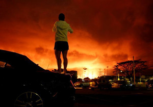 当地时间2018年6月2日,美国夏威夷当地居民拍摄基拉韦厄火山火山喷发的场景。