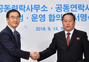 据韩国媒体14日报道,韩朝共同联络事务所启动仪式当日上午在朝鲜开城工业园内举行,来自韩国和朝鲜的逾百名官员出席了仪式。