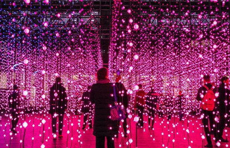 当地时间1月14日,英国伦敦金丝雀码头(Canary Wharf)举办冬季灯光展,民众徜徉光影幻境流连忘返。