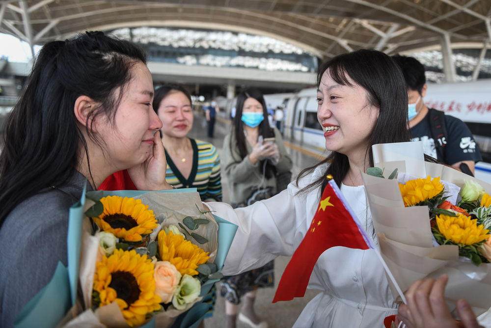 9月8日上午,国家勋章和国家荣誉称号获得者集体乘坐礼宾车,在国宾护卫队的护卫下前往人民大会堂,参加全国抗击新冠肺炎疫情表彰大会。新华社记者 刘彬 摄