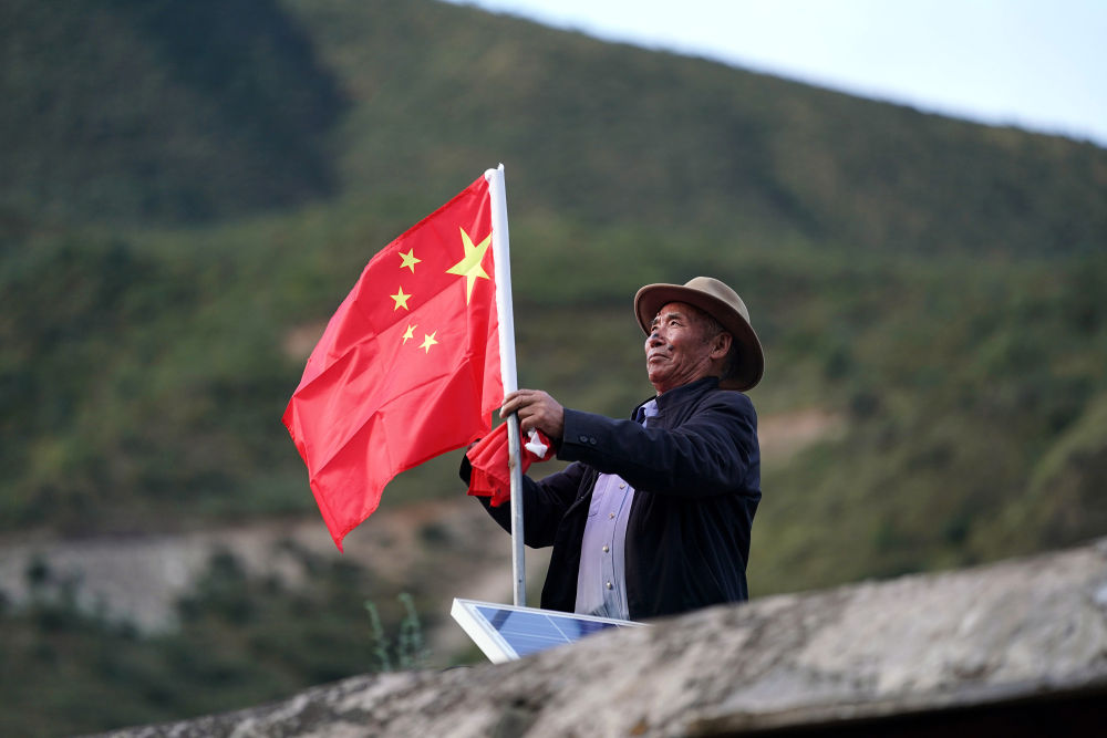 9月25日,在西藏昌都市江达县岗托村,普巴在屋顶上换上崭新的国旗,这是他每月进行一次的“仪式”。今年是昌都解放70周年,普巴说,现在我们的美好日子,是解放军用生命和鲜血换来的,这份恩情,我们不会忘记。新华社记者 詹彦 摄