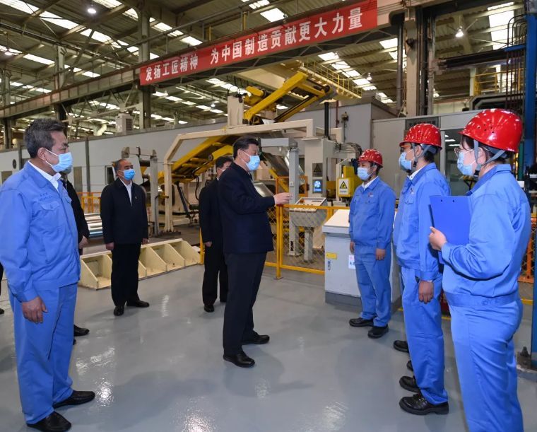 ↑4月22日,中共中央总书记、国家主席、中央军委主席习近平在西安考察调研。这是习近平在陕西汽车控股集团有限公司了解企业复工复产情况。新华社记者 鞠鹏 摄