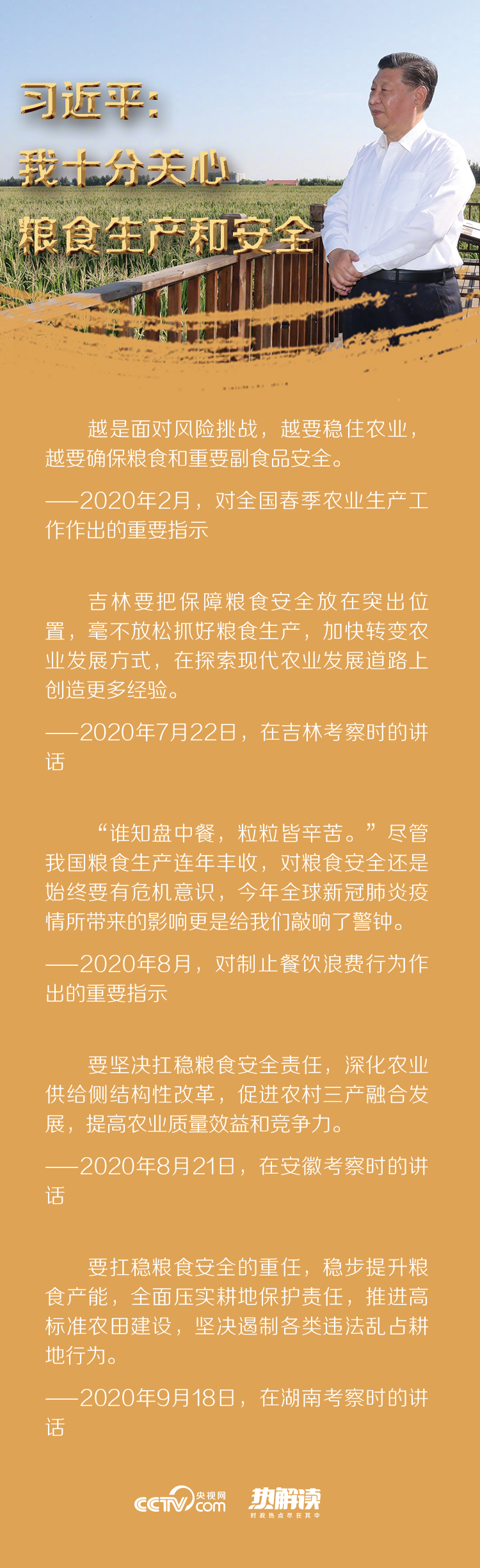 2020年,习近平总书记密集赴多省(区、市)考察调研。不同的时间、不同的地点,他都强调了同一件事——粮食安全。