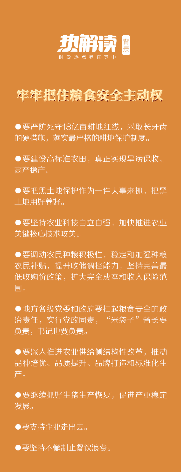 在今年的中央农村工作会议上,习近平总书记再次强调,要牢牢把住粮食安全主动权,粮食生产年年要抓紧,并就此提出多项具体要求。