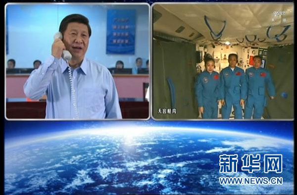 2013年6月,习近平在北京航天飞行测控中心与正在天宫一号执行任务的三位航天员进行天地通话时表示,飞天梦是强国梦的重要组成部分,随着中国航天事业的快速发展,中国人探索太空的脚步会迈得更大、更远。