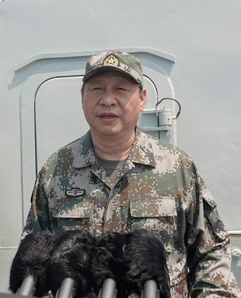 在新时代的征程上,在实现中华民族伟大复兴的奋斗中,建设强大的人民海军的任务从来没有像今天这样紧迫。要深入贯彻新时代党的强军思想,坚持政治建军、改革强军、科技兴军、依法治军,坚定不移加快海军现代化进程,善于创新,勇于超越,努力把人民海军全面建成世界一流海军。