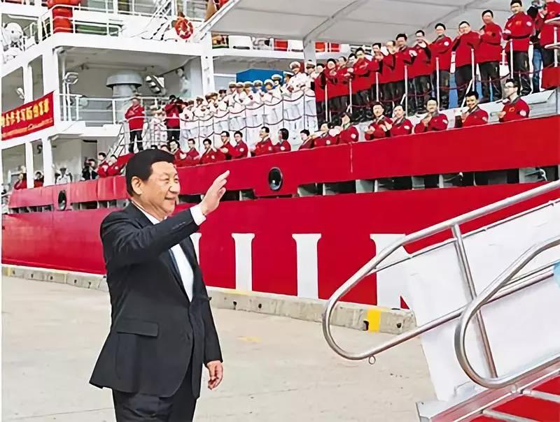2014年11月18日,正在澳大利亚访问的习近平到霍巴特港看望正在这里补给的“雪龙”号全体科考人员。