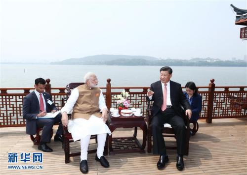 资料图:2018年4月27日和28日,中国国家主席习近平在武汉东湖宾馆同印度总理莫迪举行非正式会晤。这是4月28日,习近平同莫迪交谈。 新华社记者 鞠鹏 摄 图片来源:新华网