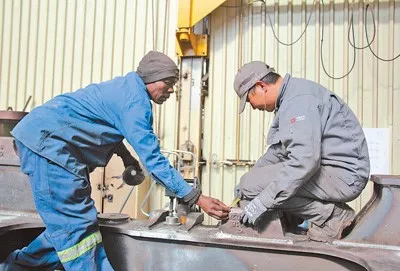 在中国中车南非比勒陀利亚工厂内,中南员工一起工作。 人民日报记者 李志伟摄