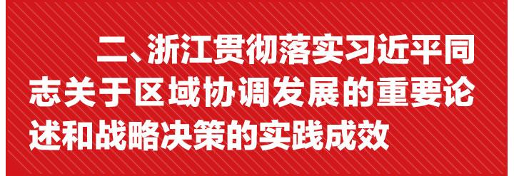习近平同志在浙江工作期间提出并实践的区域协调发展战略结出了丰硕成果。2007年,浙江城镇居民人均可支配收入达到20574元,农村居民人均纯收入8265元,分别连续7年和23年居全国各省区第一,城乡居民收入比2.49:1,为全国收入比最小的省份之一;人均GDP最高的杭州市与人均GDP最低的丽水市,人均GDP之比为2.76:1,在几个沿海发达省份中是最小的。此后,浙江坚定不移地沿着习近平同志指引的路子推进区域协调发展,使浙江成为全国区域发展最为协调的省份之一。2017年,浙江城镇常住居民的人均可支配收入达到51261元,农村常住居民人均可支配收入24956元,分别连续17年和33年居全国各省区第一,城乡居民人均可支配收入之比为2.054:1,延续十余年持续降低的走势,是全国收入比最小的省份。其中,居民人均可支配收入最高的杭州市达49832元,最低的丽水市为29329元,两地人均可支配收入之比为1.7:1,在几个沿海发达省份中是最小的。丽水市人均可支配收入,显著高于同期全国居民人均可支配收入。从欠发达地区和农村居民享受的医疗保障、基础教育、社会养老等基本公共服务来看,浙江省各项指标均处于全国领先水平,其中2017年浙江省最低月工资标准为全国各省市最高;2016年医院、卫生院床位数为49张/万人;卫生技术人员77.4人/万人。在《2017年中国发展指数》排名中,浙江位于全国各省市第五,健康、教育、生活水平、社会环境等四方面均位居全国前列。