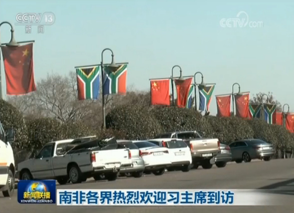 央视网消息(新闻联播):南非各界人士表示,习近平主席对南非的国事访问必将进一步提升中南全面战略伙伴关系水平,习主席出席金砖国家领导人会晤,将为开辟金砖合作更加美好的未来注入新动力。