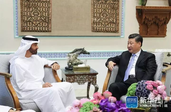 7月20日晚,国家主席习近平应阿联酋阿布扎比王储穆罕默德邀请,到王储官邸作客。双方在轻松友好气氛中就中阿关系以及共同关心的问题深入交换意见。 新华社记者 谢环驰 摄