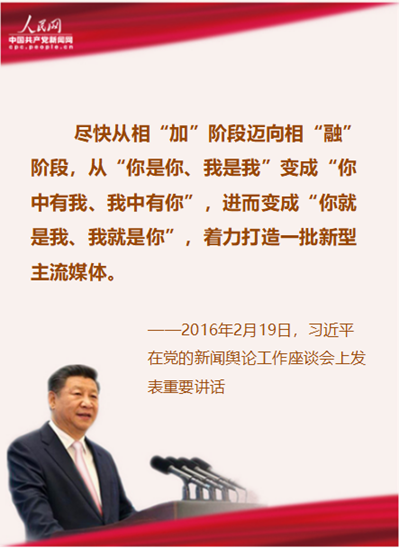 12、尽快从相“加”阶段迈向相“融”阶段,从“你是你、我是我”变成“你中有我、我中有你”,进而变成“你就是我、我就是你”,着力打造一批新型主流媒体。