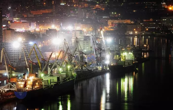 夜晚的符拉迪沃斯托克商港(新华社记者吴刚摄)