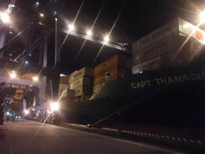 夜晚的符拉迪沃斯托克商港,灯火熠熠。满载俄罗斯远东大豆的4只集装箱正装运上船,将于近日启程,目的地中国青岛。