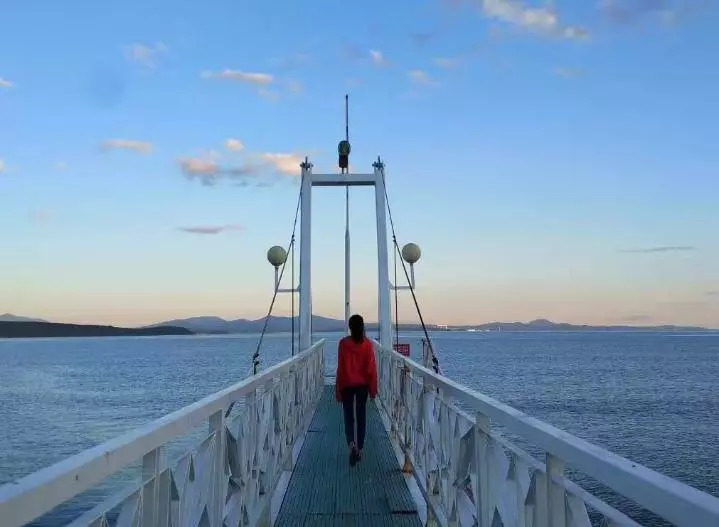 第一张是她站在符拉迪沃斯托克栈桥上的背影。晨曦微露中,红色的帽衫格外鲜亮。