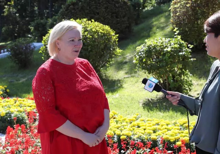 娜塔莉亚·谢米纽塔接受新华社记者采访(新华社记者庞兴雷摄)