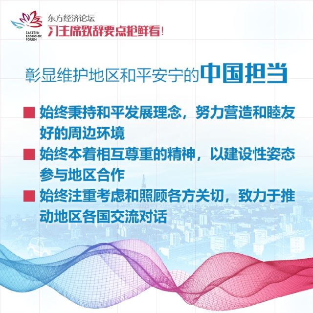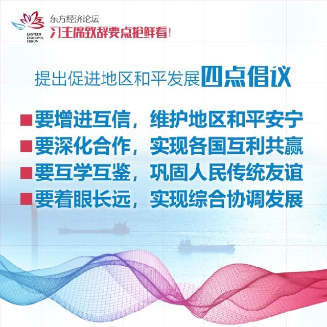 新华社符拉迪沃斯托克9月12日电(记者郑晓奕 刘华)9月12日下午,国家主席习近平在俄罗斯符拉迪沃斯托克出席第四届东方经济论坛全会并发表致辞。 新华社为你梳理习主席致辞要点。