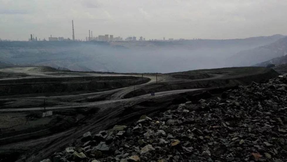 △西露天矿坑东西长6.6公里,南北宽2.2公里,总面积10.87平方公里,开采垂直深度420米。(央视记者黄京辉拍摄)