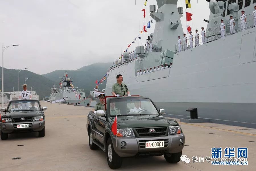 检阅结束后,习近平登上井冈山舰。他攀舷梯、下舱室、上甲板、进舰载直升机机舱,了解武器装备性能,询问官兵训练生活情况,接受水兵们赠送的舰帽、舰徽,并在航泊日志上签名。
