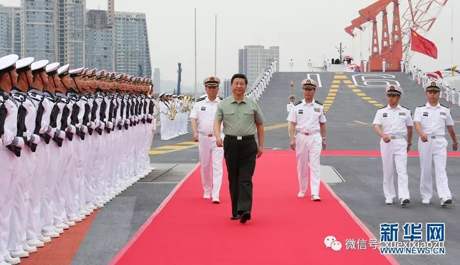 2013年8月28日,习近平登上停泊在大连港的辽宁舰,检阅了水兵仪仗队,随后攀舷梯、下机库,深入舱室战位,察看舰上装备设施,询问技战术性能,了解官兵工作训练情况。