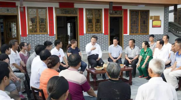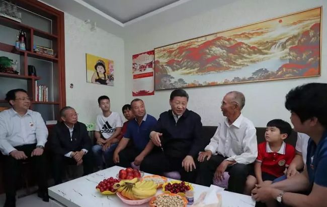 2018年6月12日至14日,习近平在山东考察。6月14日,习近平来到济南市章丘区双山街道三涧溪村,他走进村民赵顺利家,同一家人围坐一起拉家常,问他们收入怎么样,搬迁花了多少钱,生活上还有哪些困难。赵顺利拉着总书记的手激动地说,这些年老百姓的生活可好了,致富路越走越宽,日子越过越红火,全靠党的政策好。