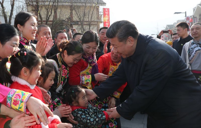 2018年2月10日至13日,习近平春节前夕赴四川看望慰问各族干部群众。2月11日,习近平乘车沿着坡急沟深的盘山公路,往返4个多小时,深入大凉山腹地的昭觉县三岔河乡三河村和解放乡火普村看望贫困群众。