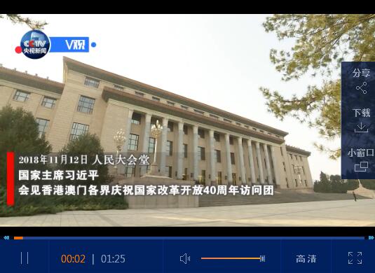 国家主席习近平12日上午在人民大会堂会见香港澳门各界庆祝国家改革开放40周年访问团。