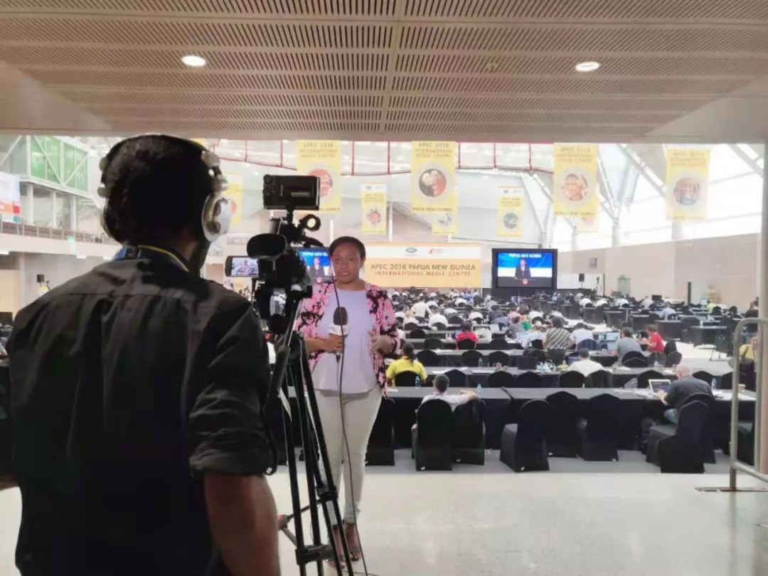 △国外记者出镜报道习主席演讲(央视记者李晓周拍摄)