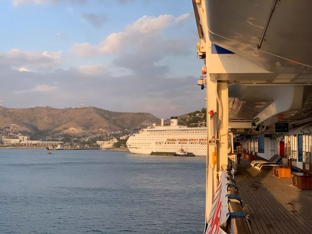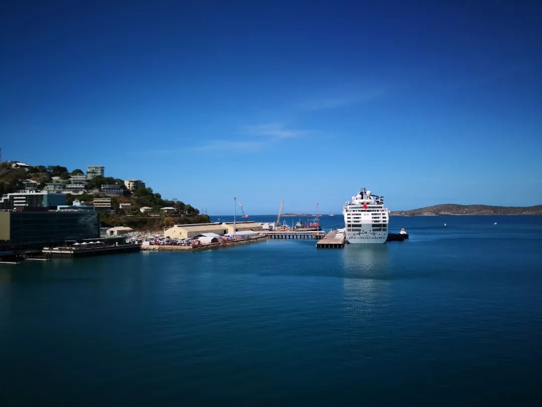 这次还有另一艘叫海洋公主号(Sea Princess)的邮轮也来到了莫尔斯比港,据说停泊在海湾的另一面。很遗憾,《时政新闻眼》没能拍到。