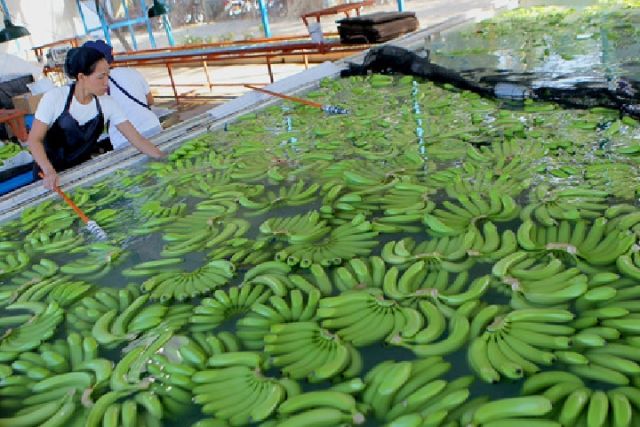 10月30日,一名工人在菲律宾棉兰老岛北达沃省的香蕉种植园清洗香蕉。新华社发(乌马利摄)