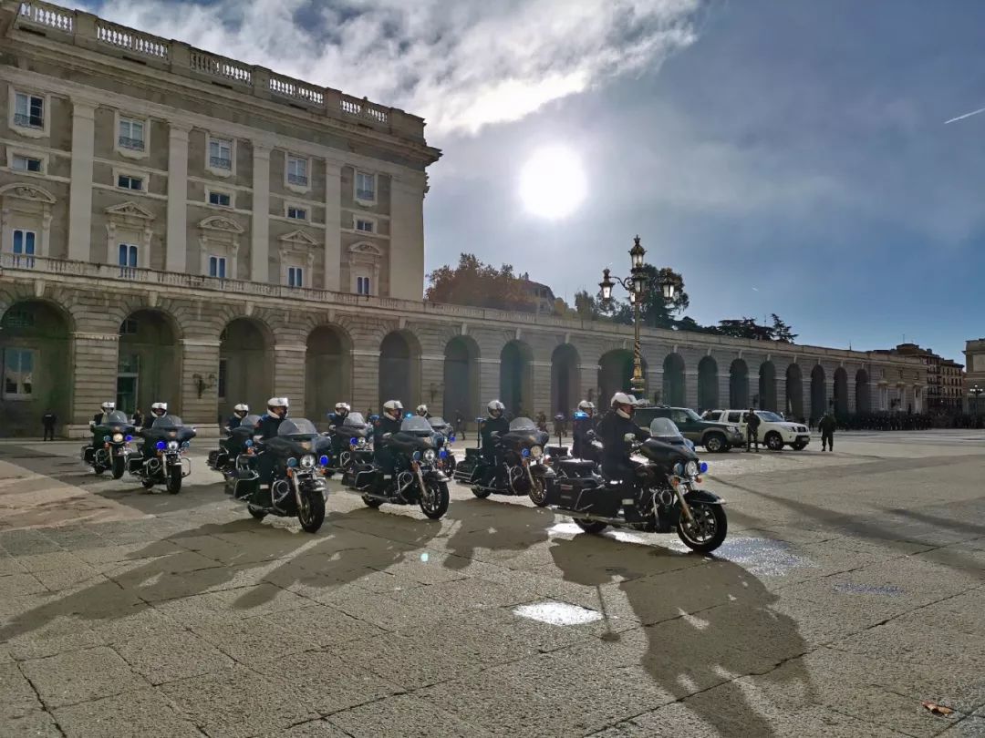 △西班牙皇家卫队摩托车单元在进行演练。(央视记者张晓鹏拍摄)