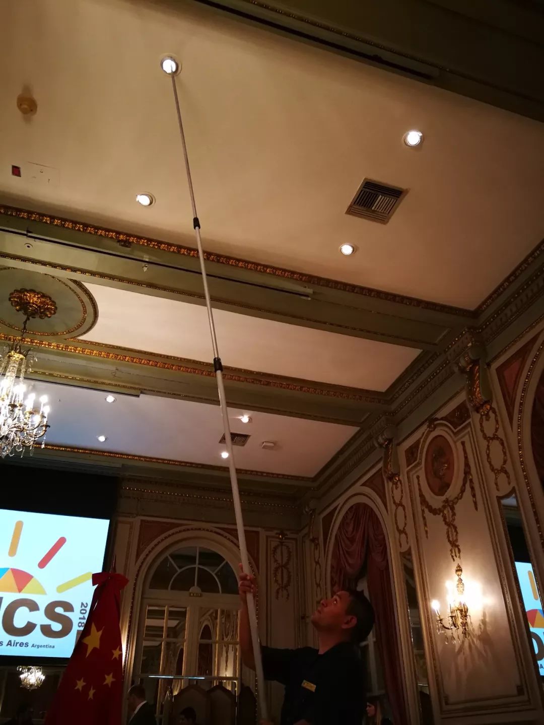 △工作人员正在调试房间内的灯光。(央视记者杨光拍摄)