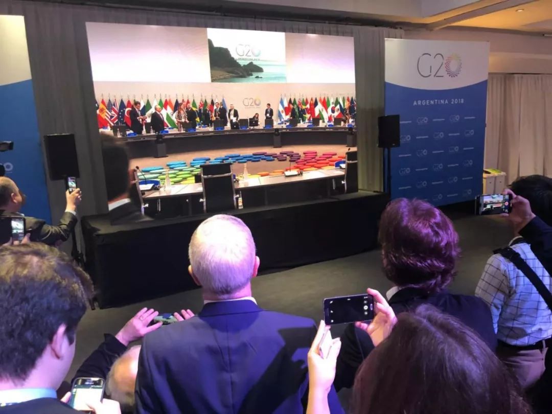 当天的第一阶段会议由阿根廷总统马克里主持。习近平发表了题为《登高望远,牢牢把握世界经济正确方向》的重要讲话。他从10年前G20应运而生的历史讲起,发出了这样的号召:“10年来,我们同舟共济、勠力同心,推动世界经济走出衰退深渊,走上了复苏增长的轨道。10年后,我们应该再次拿出勇气,展示战略视野,引领世界经济沿着正确轨道向前发展”。