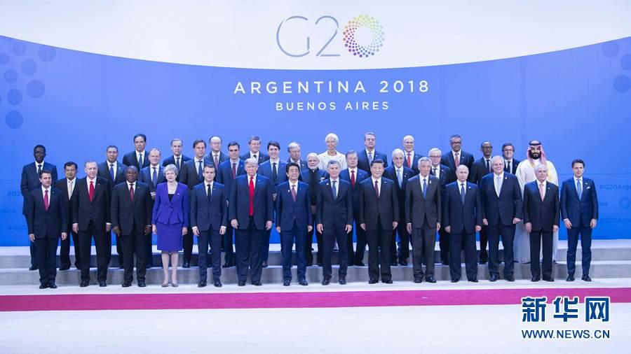当地时间11月30日,二十国集团领导人第十三次峰会在阿根廷布宜诺斯艾利斯举行。国家主席习近平出席第一阶段会议并发表题为《登高望远,牢牢把握世界经济正确方向》的重要讲话。这是习近平同其他与会领导人合影。 新华社记者 李涛 摄