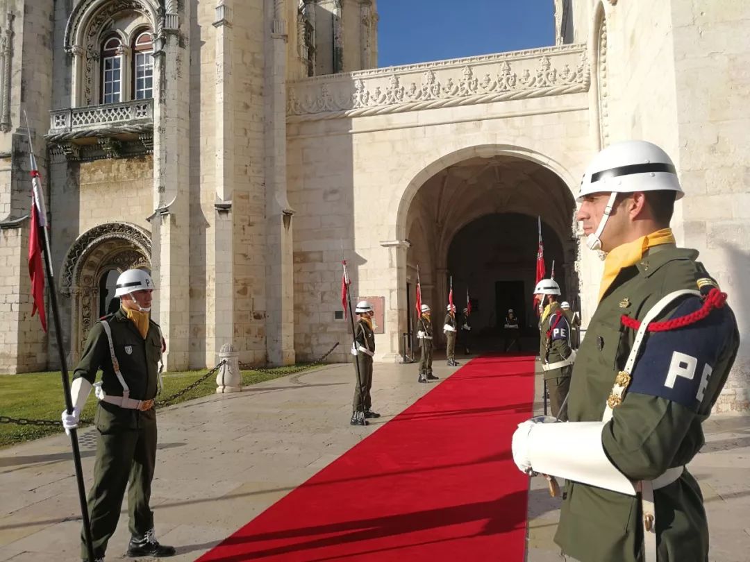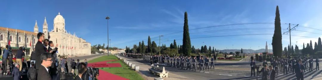 下午3点15分,葡萄牙总统德索萨在帝国广场为习近平举行欢迎仪式。