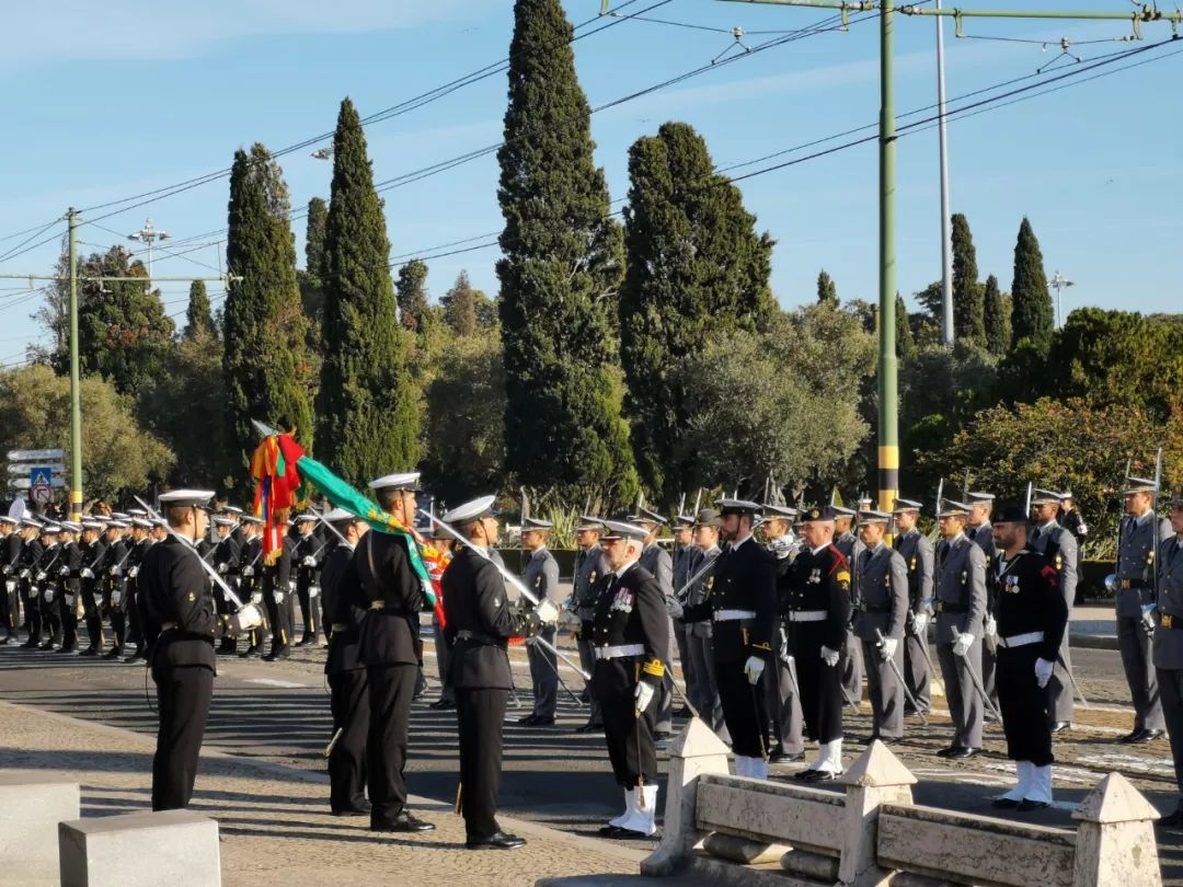 △葡萄牙三军仪仗队列队完毕。(央视记者张晓鹏拍摄)