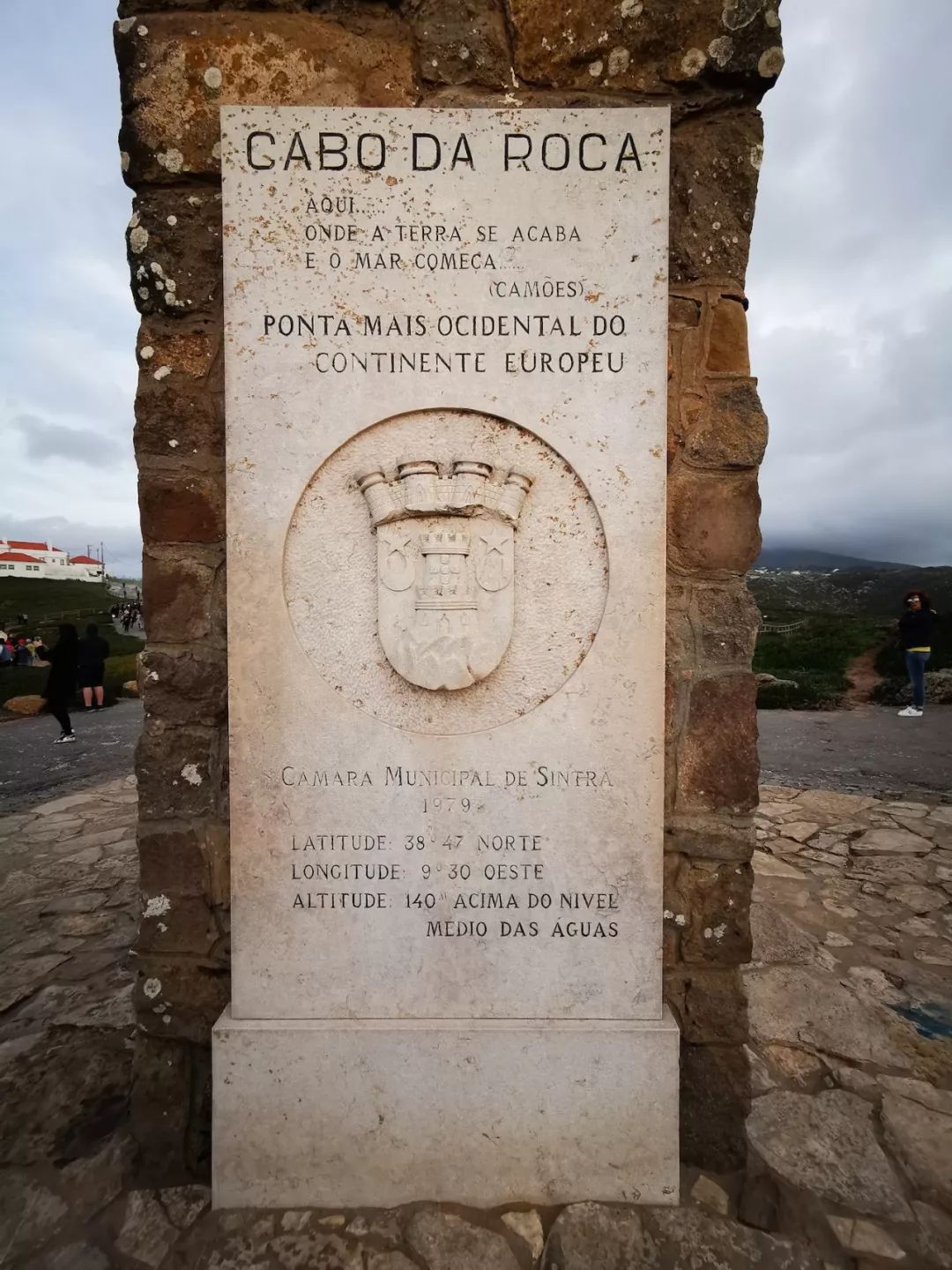 △在罗卡角临海而立的石碑上刻着葡萄牙诗人卡蒙斯的名句:“陆止于此,海始于斯”。(央视记者张晓鹏拍摄)