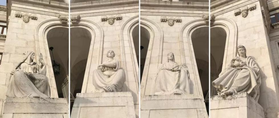 议会大厦前有四座雕像,分别象征着谨慎、力量、正义和节制。(央视记者张淳拍摄)