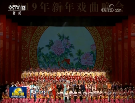 檀板弦歌贺新岁,古韵时调颂升平。喜庆祥和的戏曲合唱《百戏贺岁》拉开整场晚会的序幕。扬剧小戏《夫妻哨》和黔剧《天渠》选段,表现以守岛英雄王继才、“当代愚公”黄大发为代表的新时代共产党人“不忘初心,牢记使命”的崇高境界。《吕布试马》《鹏举儿站草堂听娘言讲》《郎对花姐对花》《天上掉下个林妹妹》等经典唱段文武兼备,武戏组合《沙场练兵》英姿飒爽,展现京剧、昆剧、河北梆子、黄梅戏、沪剧、越剧、楚剧、粤剧、秦腔、豫剧等多个代表性剧种的深厚历史与独特神韵。《清早起来什么镜子照》《今日痛饮庆功酒》等少儿戏曲联唱,彰显戏曲艺术后继有人的喜人气象。京剧《红军故事·半条棉被》片段讲述长征路上军民鱼水情深的感人故事,唤起观众对红军精神、长征精神的崇敬缅怀,激发人民对走好新时代长征路的豪情壮志。艺术家们的精湛表演,引来观众们的阵阵喝彩。“中华儿女多壮志,砥砺奋进盛世开……”戏歌《向未来》激昂有力,唱出亿万人民在以习近平同志为核心的党中央引领下,为决胜全面建成小康社会、实现中华民族伟大复兴中国梦不懈奋斗的坚定信念。