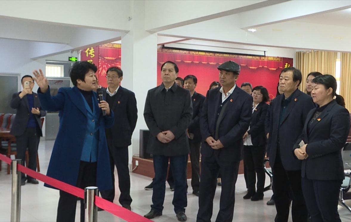 图为济南市章丘区三涧溪村党总支书记高淑贞为前来参观学习的单位讲解(人民网 刘祺摄)