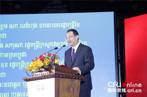 柬埔寨副首相贺南洪在开幕式上宣读洪森首相贺词。