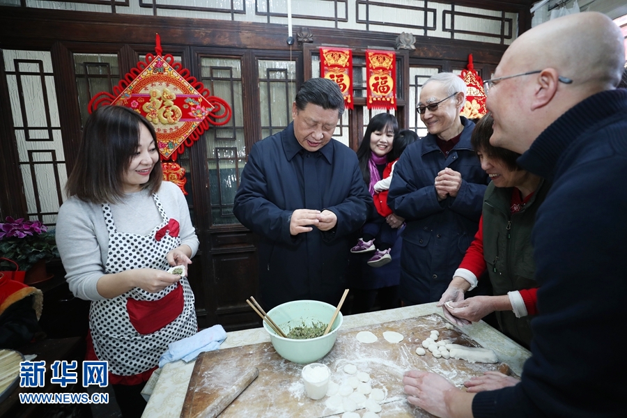 中华民族传统节日农历春节来临之际,中共中央总书记、国家主席、中央军委主席习近平在北京看望慰问基层干部群众,向全国各族人民致以美好的新春祝福。这是2月1日上午,习近平来到北京前门东区,走进居民家中看望慰问,同群众一起包饺子。 新华社记者 鞠鹏 摄