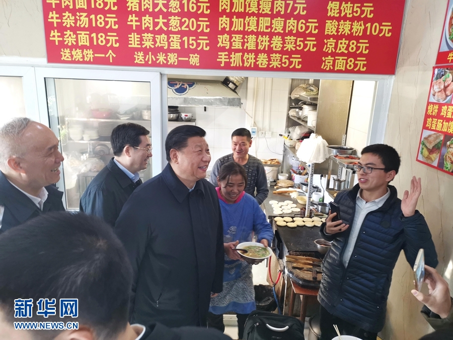 中华民族传统节日农历春节来临之际,中共中央总书记、国家主席、中央军委主席习近平在北京看望慰问基层干部群众,向全国各族人民致以美好的新春祝福。这是2月1日中午,习近平结束在北京市前门东区看望慰问乘车返回途中,特意走进位于前门石头胡同的小吃店,看望仍在工作的劳动者,了解他们工作和生活情况。 新华社记者 王晔 摄
