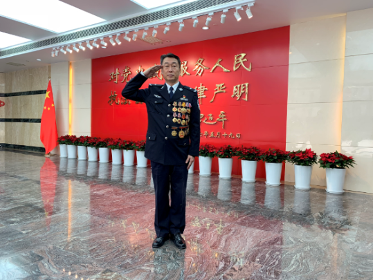 △“北京最帅交警”孟昆玉。他把“站马路”这件事一做就是十多年,还自创了“孟昆玉疏导法”,大大提高了执勤路段的通行能力。(央视记者卢心雨拍摄)