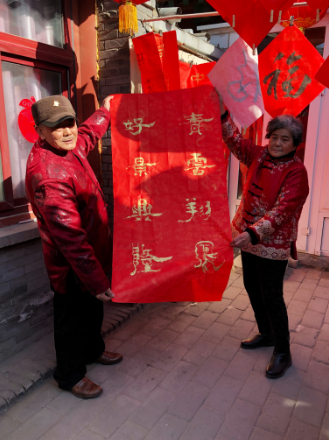 △草厂四条胡同32号院子里,挂满了寓意祥和的大红春联。(央视记者王哈男拍摄)