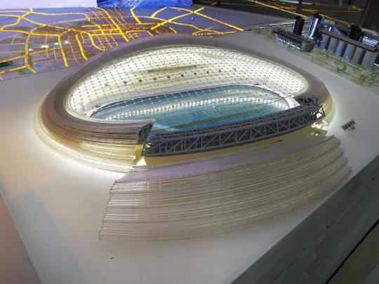 △国家速滑馆沙盘。(央视记者张晓鹏拍摄)