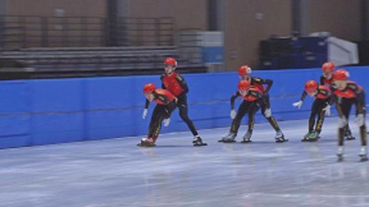 △正在训练的短道速滑运动员。(央视记者王哈男拍摄)