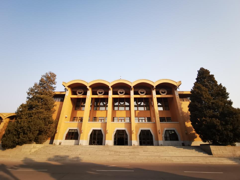 △“开学第一课”的地点——中共中央党校礼堂。建成于1959年9月。建筑外墙采用黄缸砖贴面,屋顶为拱型薄壳结构。屋檐下方镶有五个圆型空心花饰,既代表中国陕北特色的窑洞风格,又体现苏式建筑的特点。它是由建筑设计师戴念慈设计的。(央视记者张晓鹏拍摄)