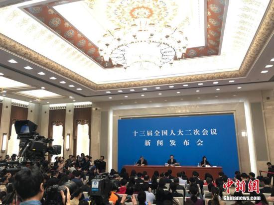 3月4日,十三届全国人大二次会议在北京人民大会堂举行新闻发布会,大会发言人张业遂就大会议程和人大工作相关的问题回答中外记者提问。中新社记者 侯宇 摄